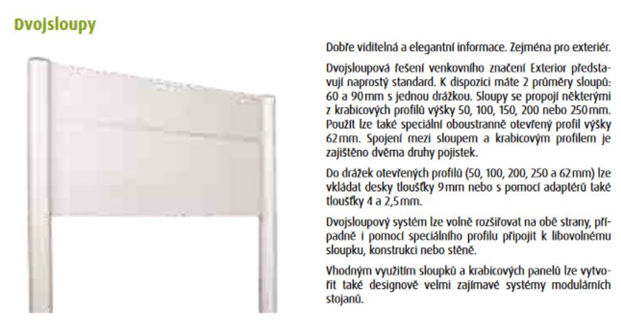 Tento mimořádně flexibilní systém, sestavený ze sloupů a krabicových profilů nebo ve spojení s jinými, například deskovými materiály, vytváří velmi kreativní a odolné značení.