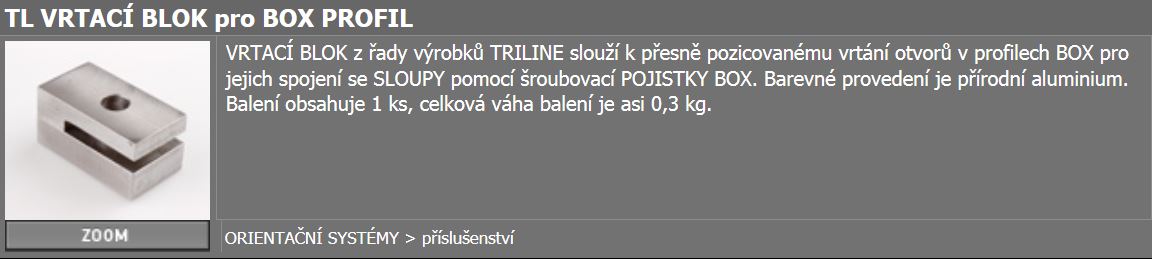Rádi vám občas připomínáme některé zdánlivě nenápadné výrobky, které ale stojí za zmínku, protože se mohou hodit a unsadnit vám práci. Dnes se podíváme na Vrtací blok – další praktický pomocník, který využijete, pokud u Megaflexu nakupujete a sami sestavujete, montujete či instalujete orientační systémy TRILINE.