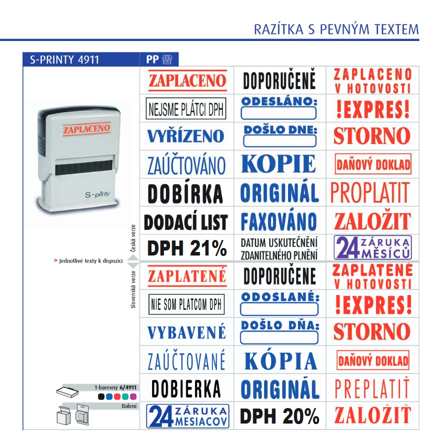 Možné barvy otisku: černá, modrá, červená, zelená a fialová.