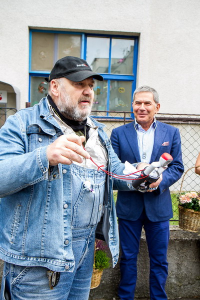 - Autor myšlenky na sbírku výrobců a prodejců razítek Trodat pan Milan Boehm obhlíží hotový babybox