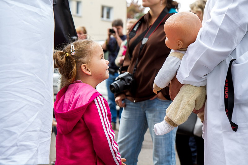 - Terezka obdivuje panenku, která jako první vyzkouši, zda babybox opravdu funguje