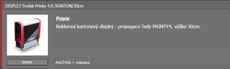 Neváhejte tedy a přidejte si kartonový DISPLEJ Trodat Printy 4.0. k vaší další objednávce. Nabídka platí jen do vyčerpání zásob, proto radíme: pokud ho chcete, reagujte prosím rychle.