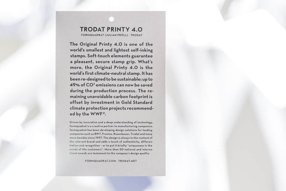 Jsme velmi pyšní, že neonová řada našich samobarvicích razítek 4912 a 4911 z řady Printy 4.0 architekta zaujala a že razítka TRODAT jsou považována za jednoho z hlavních reprezentantů kvality a designu konkrétní země. A to vedle takových top rakouských výrobků jako jsou například Sacher dort, Mozartovy koule nebo rakouské lyže či vázání.