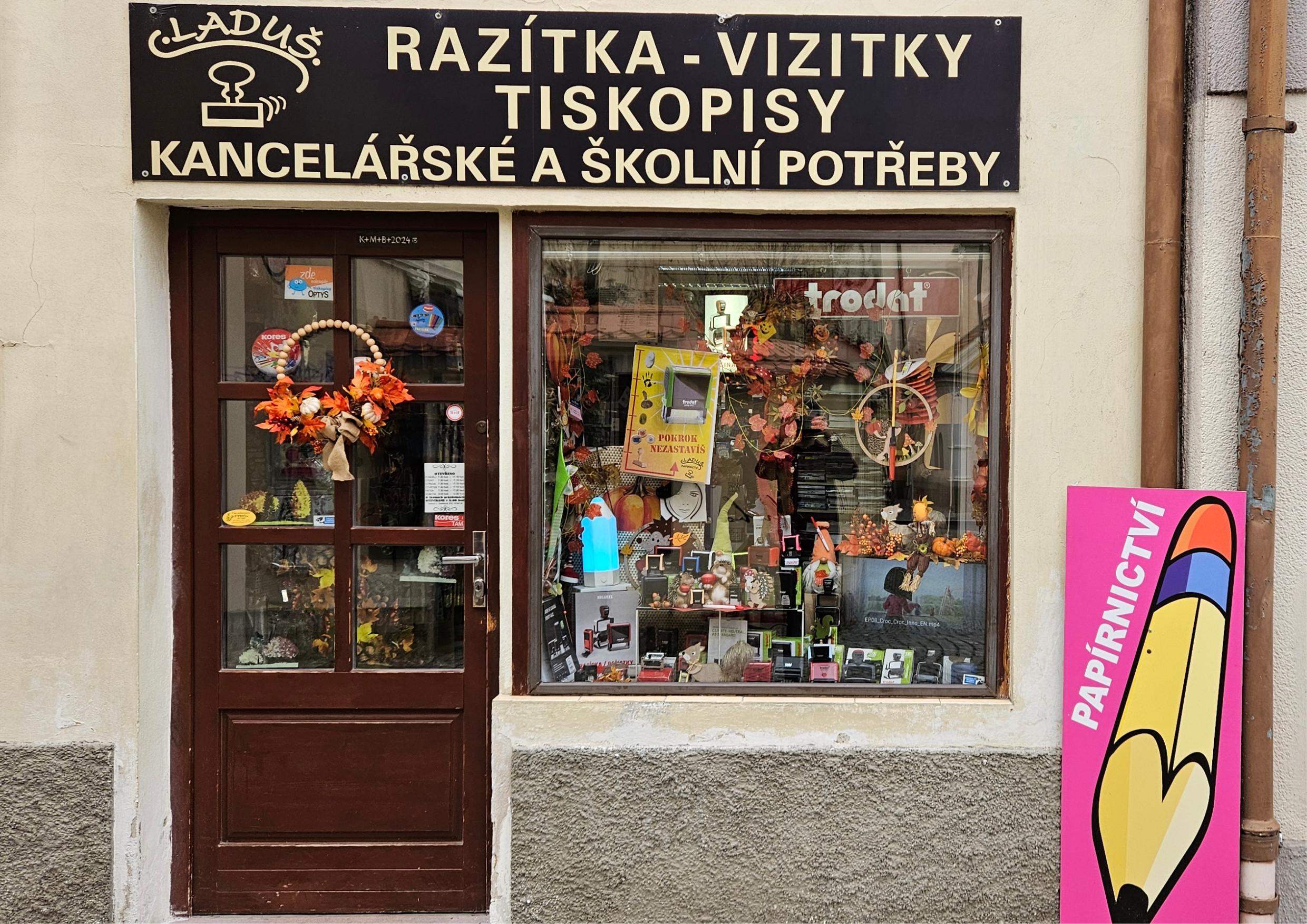 O Plný Pytel Printy s fotografií výlohy soutěží také firma Razítka – Tiskopisy LADUŠ z Berouna, která razítka TRODAT prodává kromě kamenné prodejny i v eshopu pro koncové zákazníky. Tento e-shop razítek od Megaflexu mají všichni naši partneři zdarma. Pro razítka LADUŠ a jejich zákazníky je to adresa: ladus.razitko.cz.