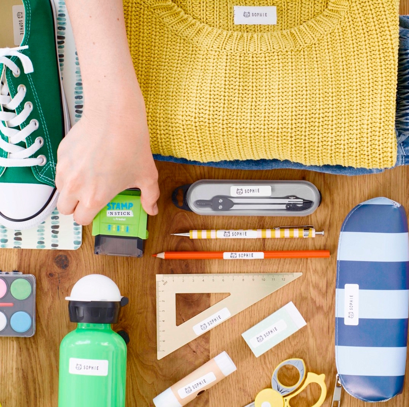 Sada s razítkem Stamp And Stick umožňuje vysázet jakýkoliv text (nejčastěji jméno s veselou ikonou). A pak označit všechny předměty, které chcete, aby se neztratily – tedy například knihy, boty, textil, hladké povrchy a jako bonus sada obsahuje i samolepky a nažehlovací pásky.