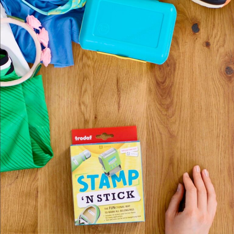 Za chvíli děti odjedou na tábory a rodiče na dovolené a určitě nikdo nechce, aby se jim věci poztrácely. Všichni asi známe ten moment, kdy dítě vysype z batohu chuchvalec oblečení a není vůbec jasné, čí je co. Domů vám pak přiveze směs všeho možného a vy velmi těžko identifikujete majitele. Proto má Trodat již několik let skvělé řešení na léto i do školních lavic. Sada s razítkem Stamp And Stick je funkční možnost, jak si označit věci.