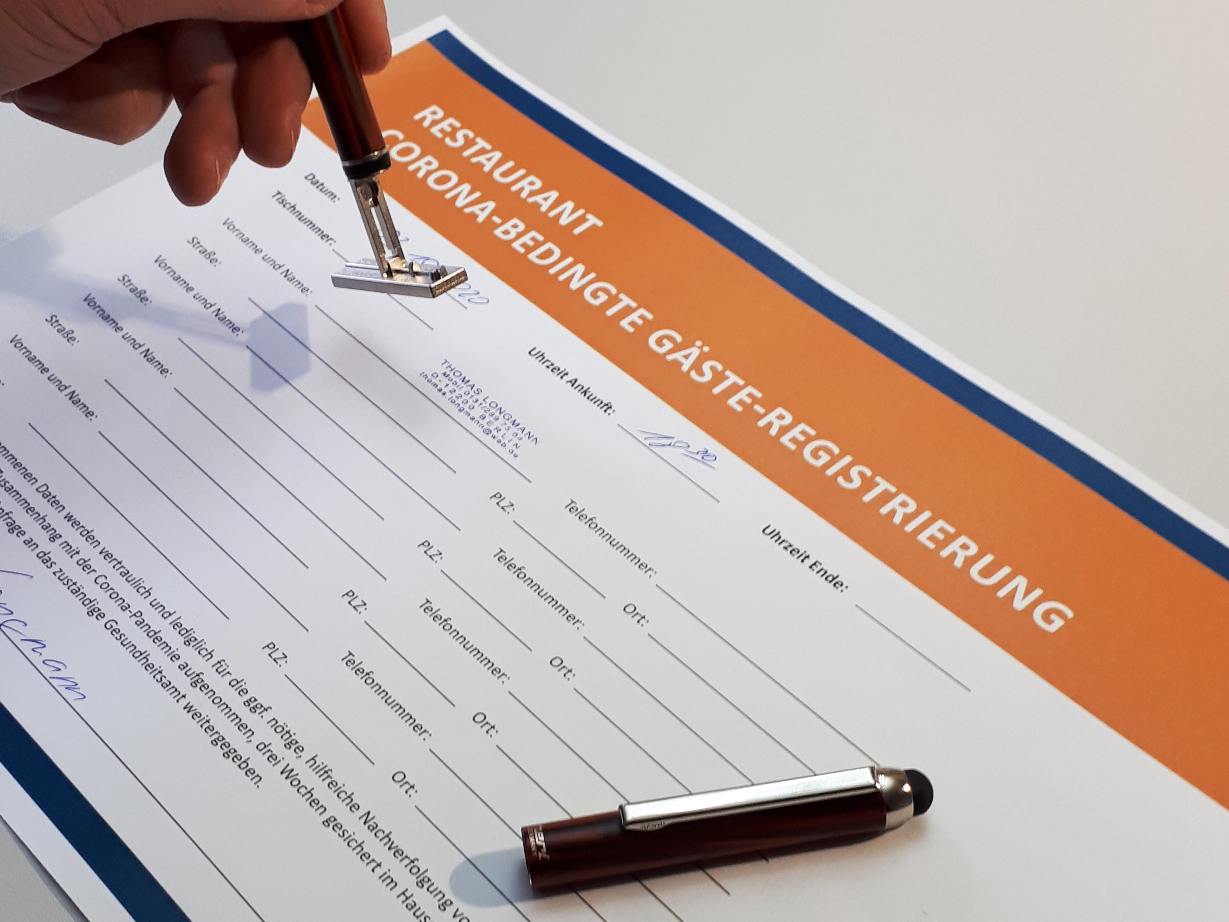 • Razítko vždy s sebou: Místo ručního vyplňování údajů a zbytečného dotýkání se povrchů máte vždy vlastní základní data po ruce rychle a v malém formátu. Zároveň si můžete označit vaše věci, aby se jich zbytečně nedotýkal nikdo další.
