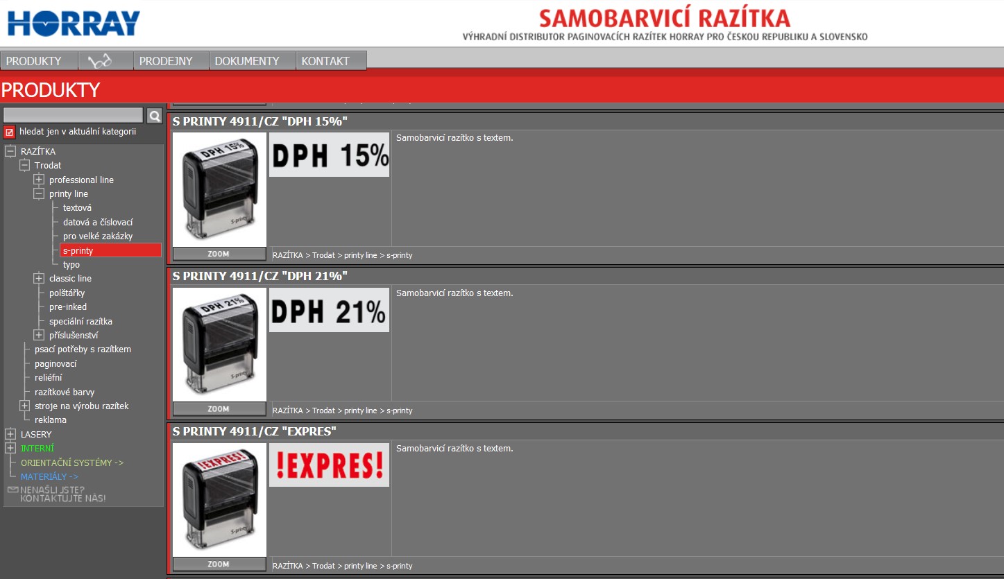V našem e shopu najdete razítka s pevným textem snadno, stačí najet na řádek s-printy v oddílu printy line (viz obrázek)