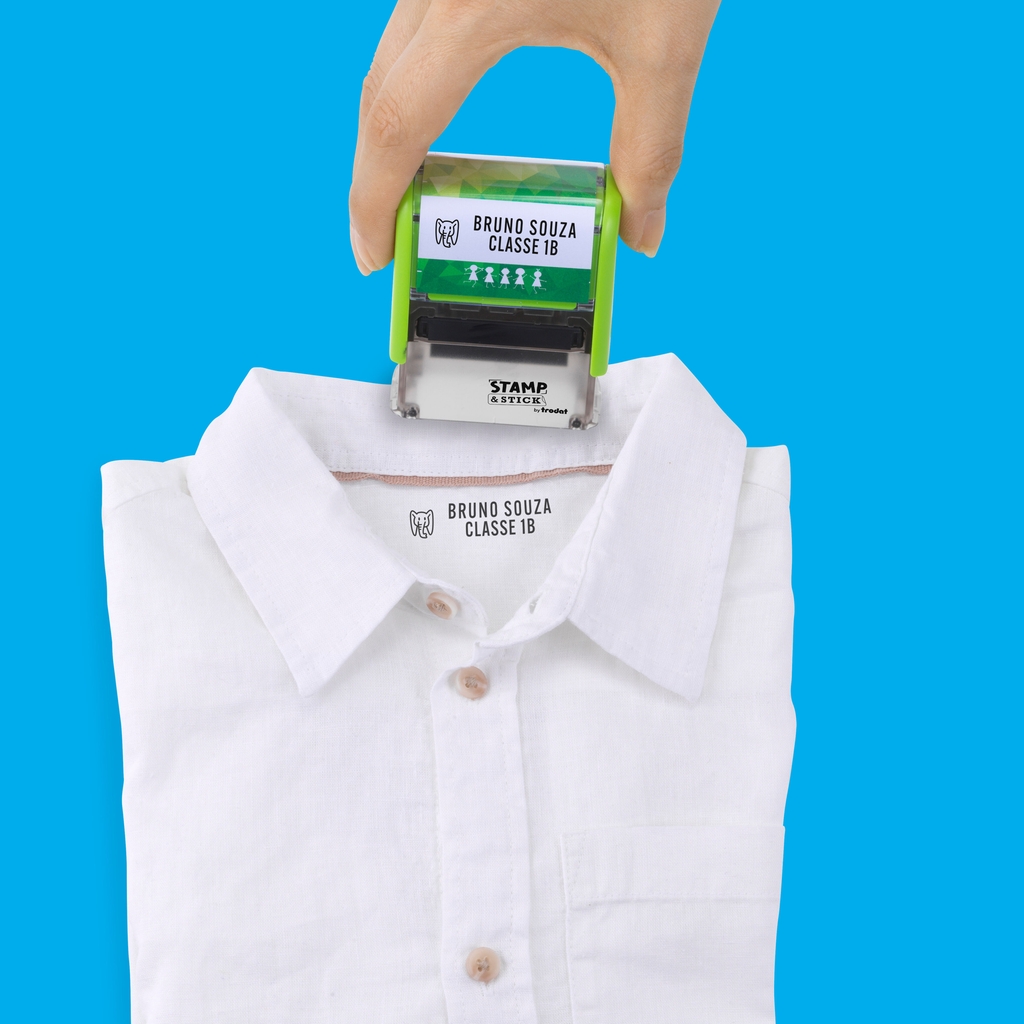 Sada s razítkem Stamp And Stick umožňuje vysázet jakýkoliv text (nejčastěji jméno s veselou ikonou). A pak označit všechny předměty, které chcete, aby se neztratily – tedy například knihy, boty, textil, hladké povrchy a jako bonus sada obsahuje i samolepky a nažehlovací pásky.