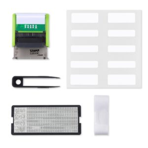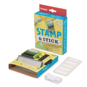 Sada Stamp And Stick je zábavná a funkční možnost, jak si označit věci. Umožňuje sestavit jakýkoliv text (nejčastěji jméno s veselou ikonou). A pak označit všechny předměty, které chcete – tedy například papíry, knihy, učebnice, boty, textil, hladké povrchy, nažehlovací pásky a tak dále.