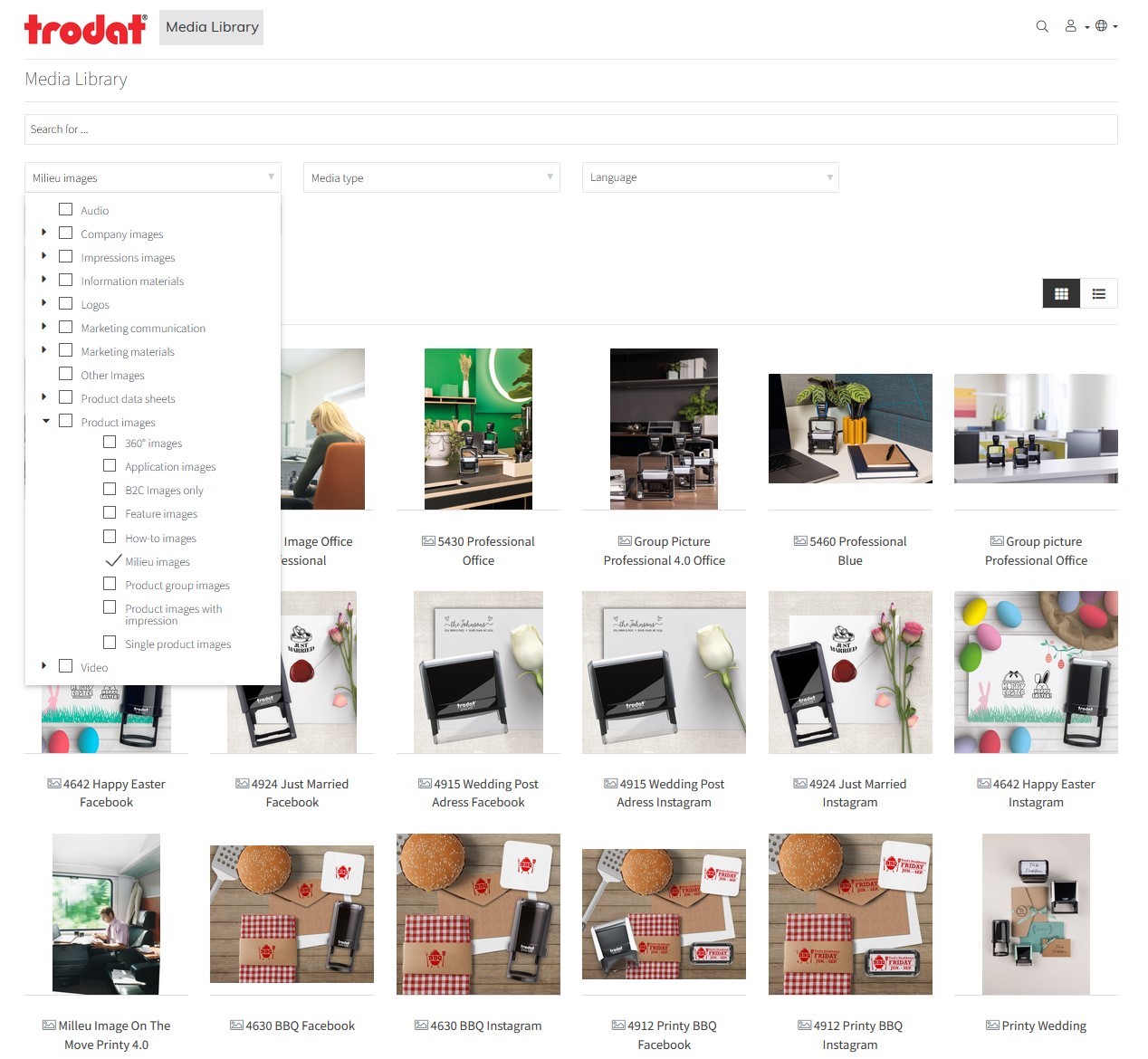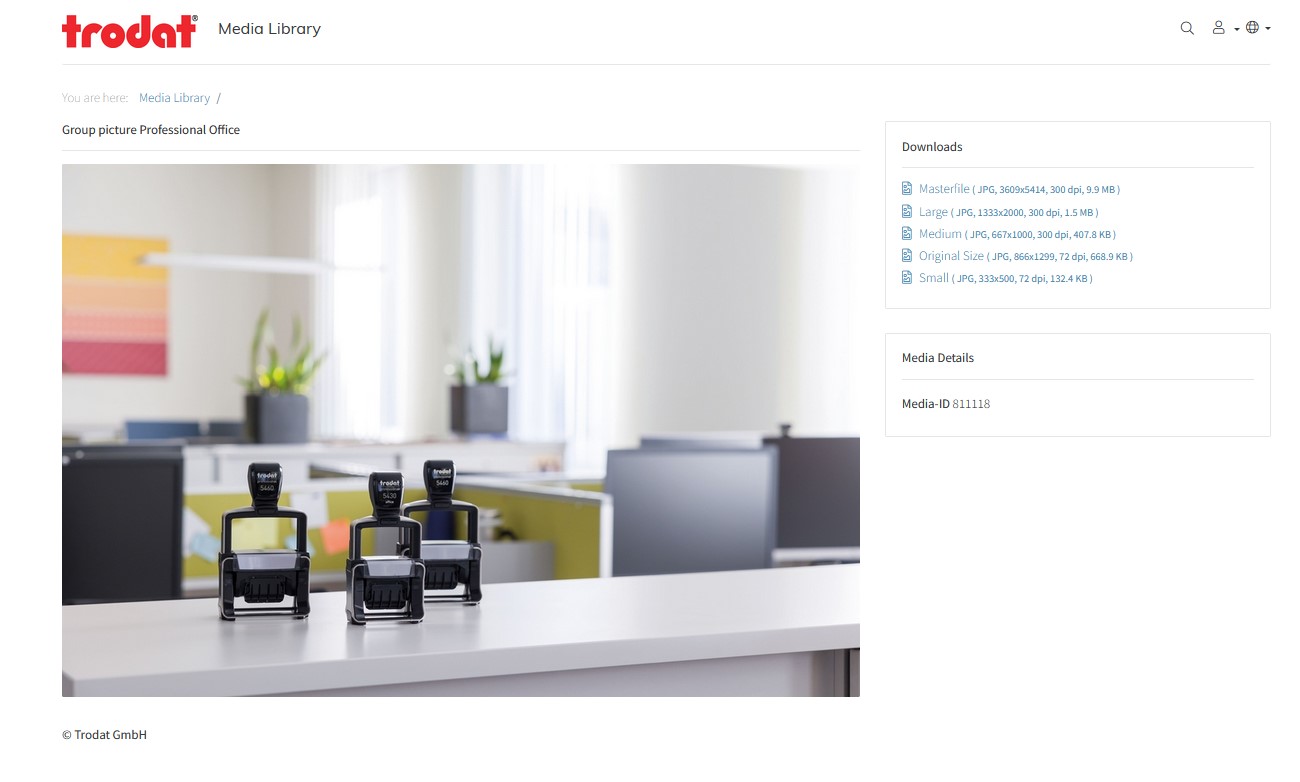 Trodat Infoportal, jak již víte z našich minulých článků, najdete na adrese infoportal.trodat.net a výběr produktových fotografií pro sociální sítě najdete pod záložkou: Product Images/Milieu Images.