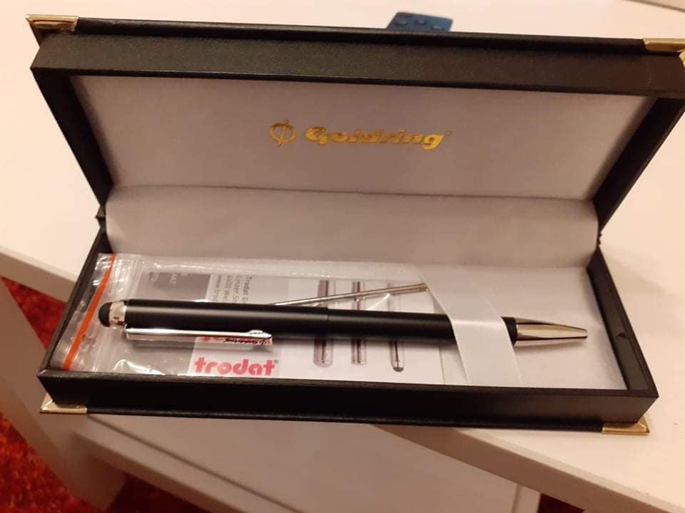 Nadčasové, spolehlivé, dokonalé – kombinace psací potřeby vysoké kvality s plně funkčním samobarvicím razítkem nabízí široké použití. Goldring udělá radost použitím jedinečných materiálů, zajímavým mechanismem i luxusní úpravou povrchu.