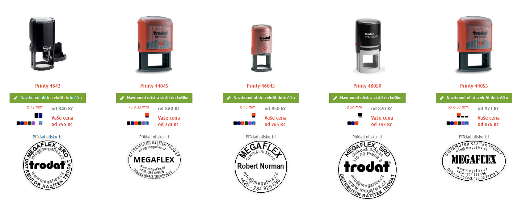 Tento článek je určen pro obchodní partnery a registrované zákazníky firmy Megaflex. Pokud nejste registrovaný zákazník, ale máte zájem o konkrétní produkt, o kterém píšeme, můžete si jej objednat online nebo osobně koupit u kteréhokoliv z rozsáhlé sítě prodejců značky TRODAT poblíž vašeho bydliště či kanceláře.