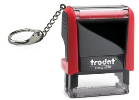 Pro děti je vhodné i například úplně malé červené 3 řádkové razítko PRINTY 4910 s přívěskem. Samozřejmě je dostupné i ve verzi bez přívěsku – v černé, modré, šedé, zelené, fialové a červené barvě.